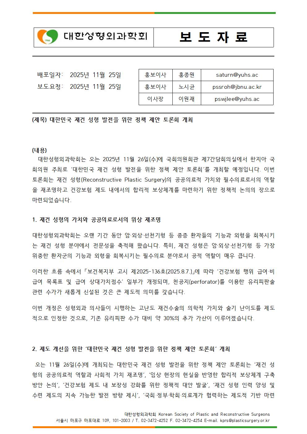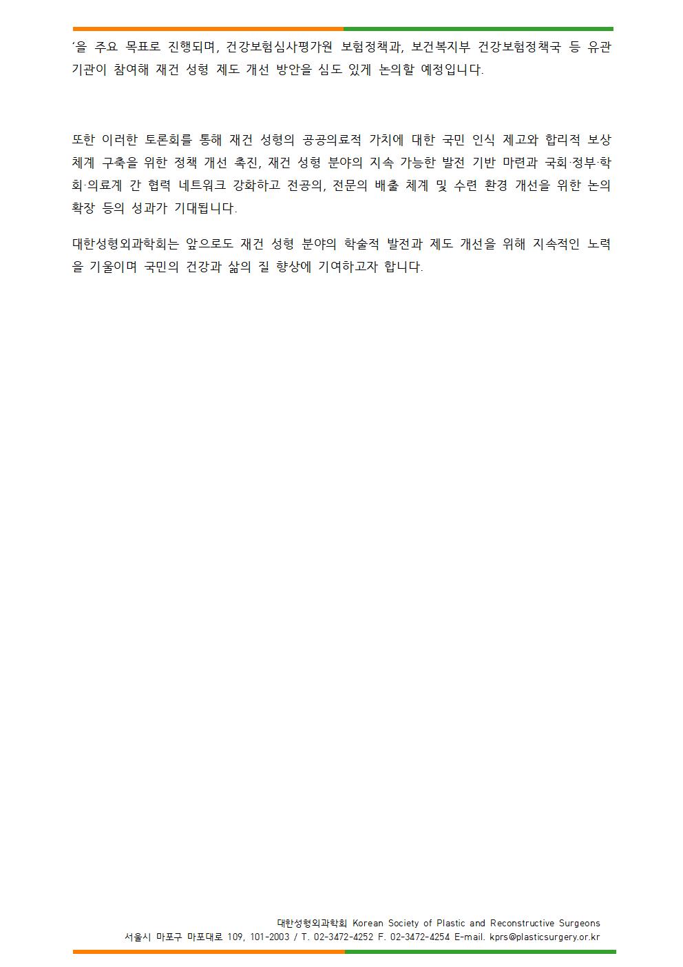 첨부파일 대한민국 재건 성형 발전을 위한 정책 제안 토론회 개최 보도자료.pdf 대한민국 재건 성형 발전을 위한 정책 제안 토론회 개최 보도자료.pdf (다운18회)